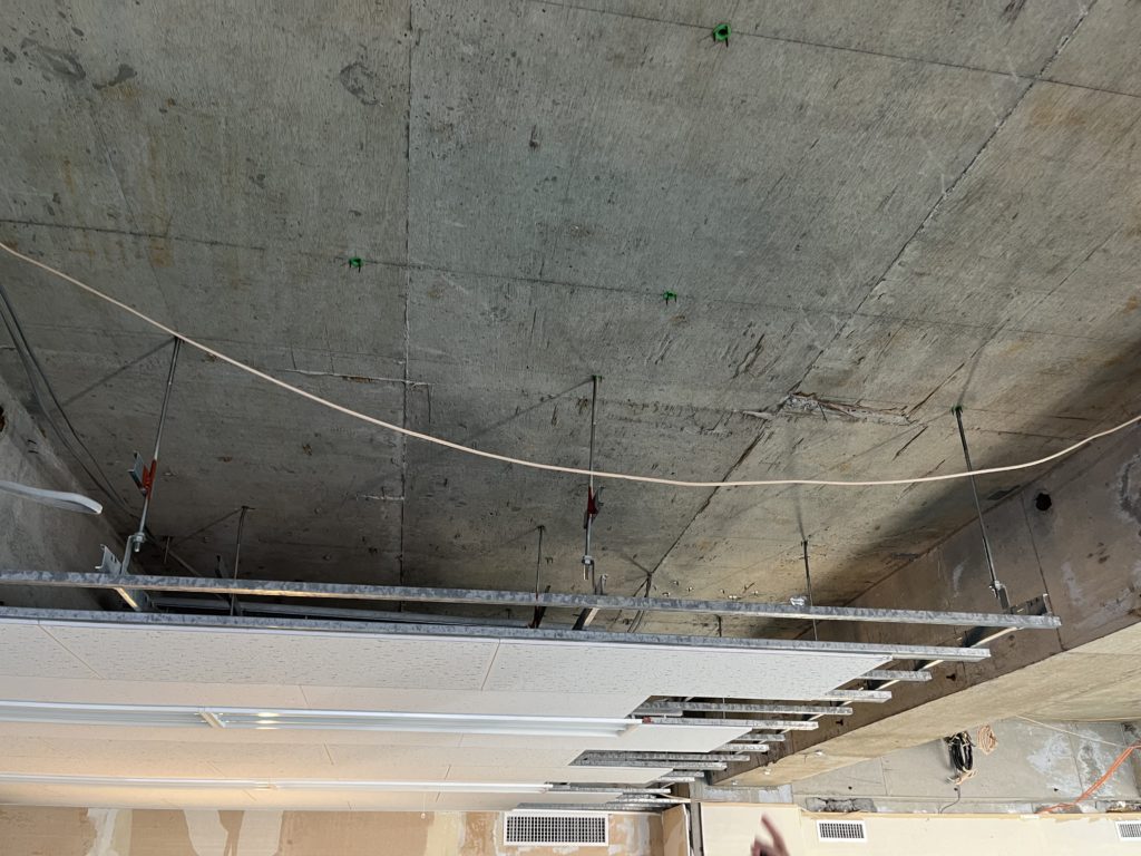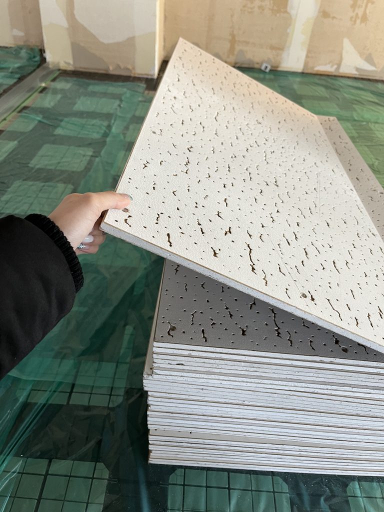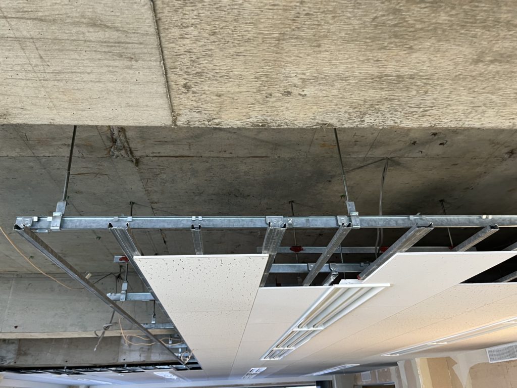 このようにして、普段私たちが働いているオフィスの天井が出来上がります。