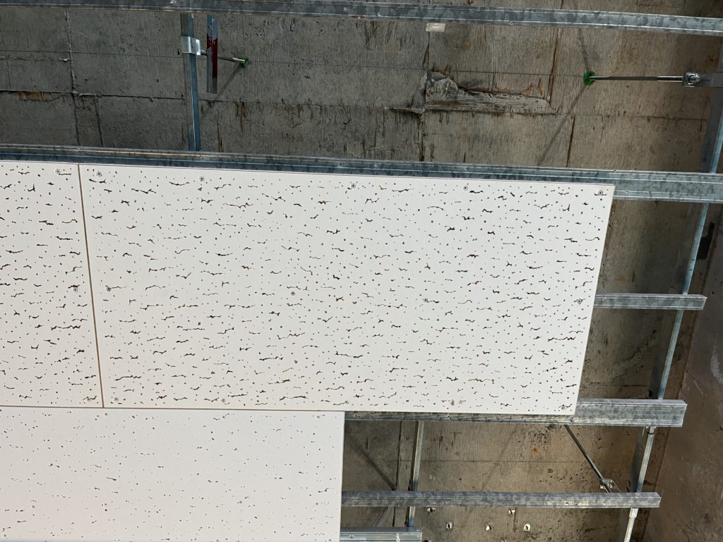 下地ができたら、そこに天井ボードを取り付けていきます。